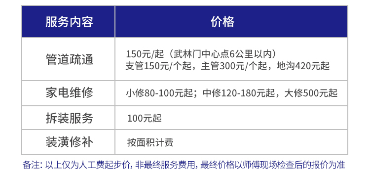 3. 以上價(jià)格僅為維修人工費(fèi),不包含材料配件費(fèi);如需材料配件,客戶可自買或與維修師傅溝通代買。